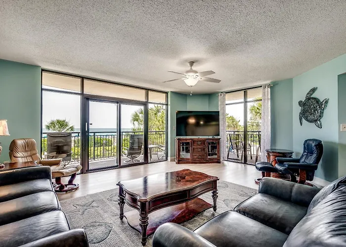 During the stay at the beachfront South Wind -208 Villa Myrtle Beach, guests can indulge in a Jacuzzi or visit the Myrtle Beach Pelicans, located 4.6 km away. This 4-bedroom holiday home features opportunities for horse riding in the area, 15 minutes by car from the Apache Pier.
